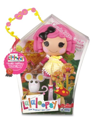 Your child will enjoy playing with the Crumbs Sugar Cookie Bitty Button Doll. The Bitty Buttons are rag dolls that magically came to life, taking on the personalities of the fabrics used to make them. This Bitty Button Doll lives in a colorful, silly world full of magic.LaLaLoosy Doll Crumbs Sugar Cookie * Includes an adorable pet * Includes a promise certificate * Includes a collectible poster